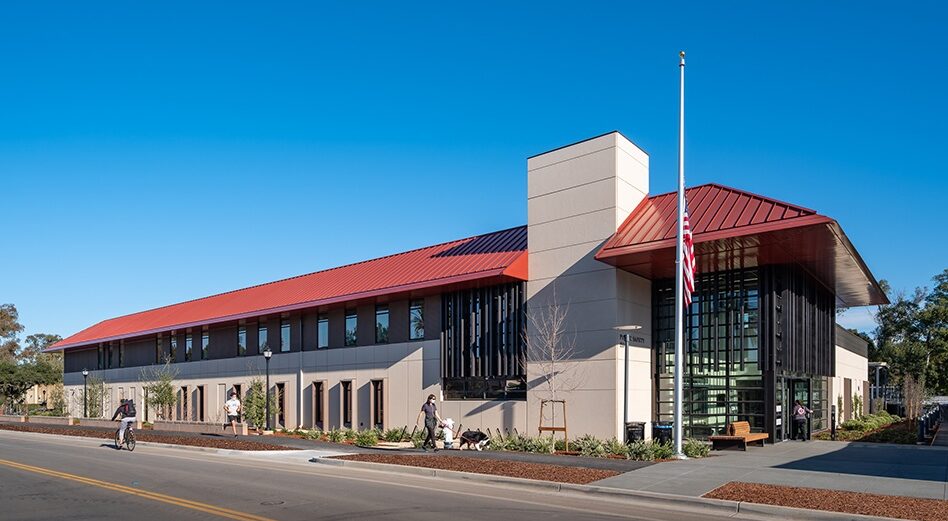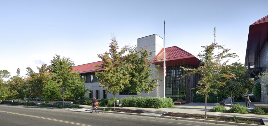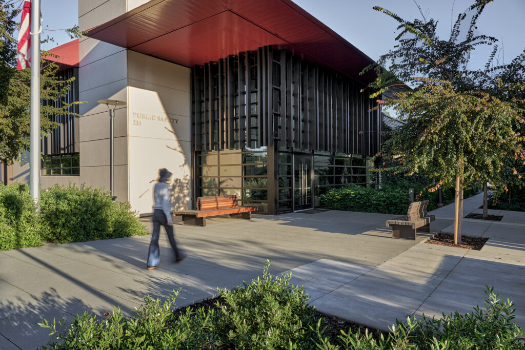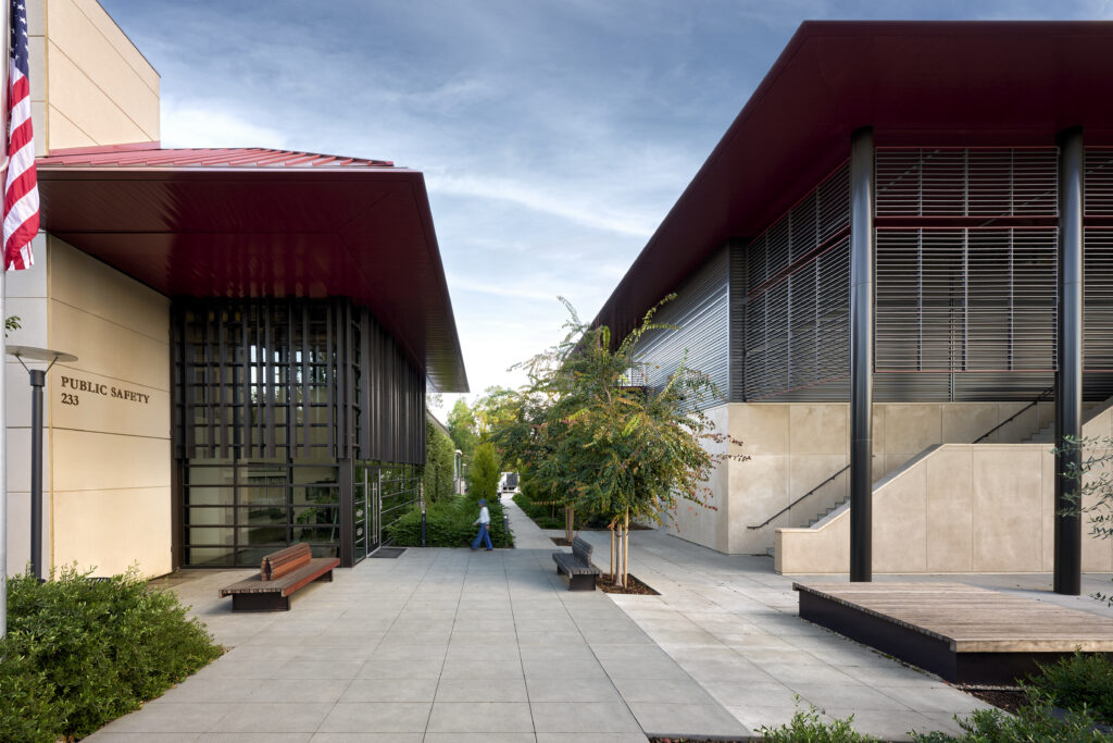 The landscape for this welcoming law enforcement and emergency services presence is situated on the world class Stanford Campus. IA designed an entry landcape that is an inviting shared arrival plaza in the foreground of the two companion facilities of the Public Safety Building and Emergency Communications Center.